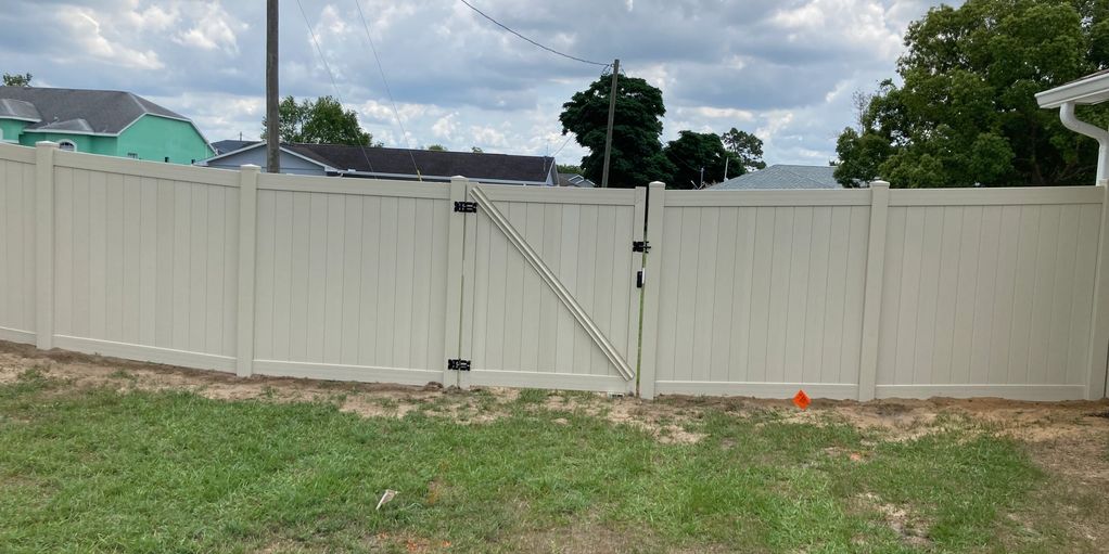 Add warmth and elegance to your property with a tan vinyl privacy fence. Durable, low-maintenance, and built to withstand Florida weather, this fence provides complete privacy and security while blending seamlessly with any Brooksville home or landscape